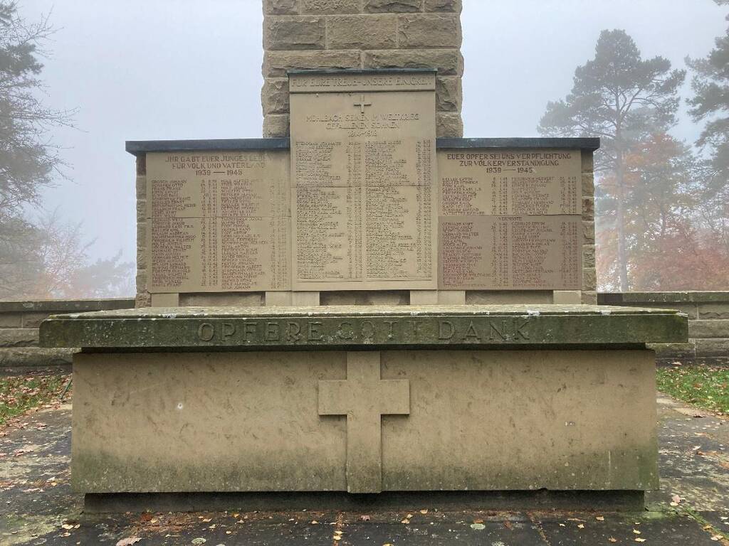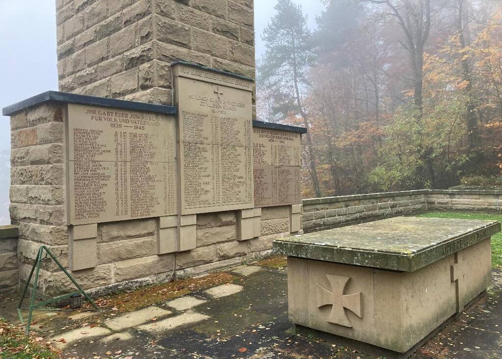 In dieser Zeit wurde der Turm auch links und rechts mit Anbauten ergänzt, um Platz für die Namenstafeln der Gefallenen und Vermissten des 2. Weltkrieges zu schaffen. In den 90er Jahren begannen sich die massiven Mauern links und rechts des Turmes gen Tal zu wölben. Die Entwässerung funktionierte nicht mehr, das Mauerwerk gab dem anstehenden hydrostatischen Druck nach. Damals wurde durchaus auch ernsthaft darüber diskutiert, ob man solche Orte der Erinnerung noch braucht, ob ein Abriss nicht besser sei. Das wäre fatal gewesen.