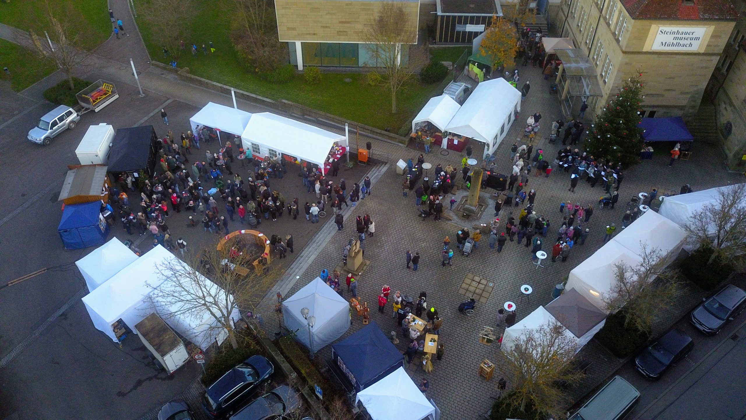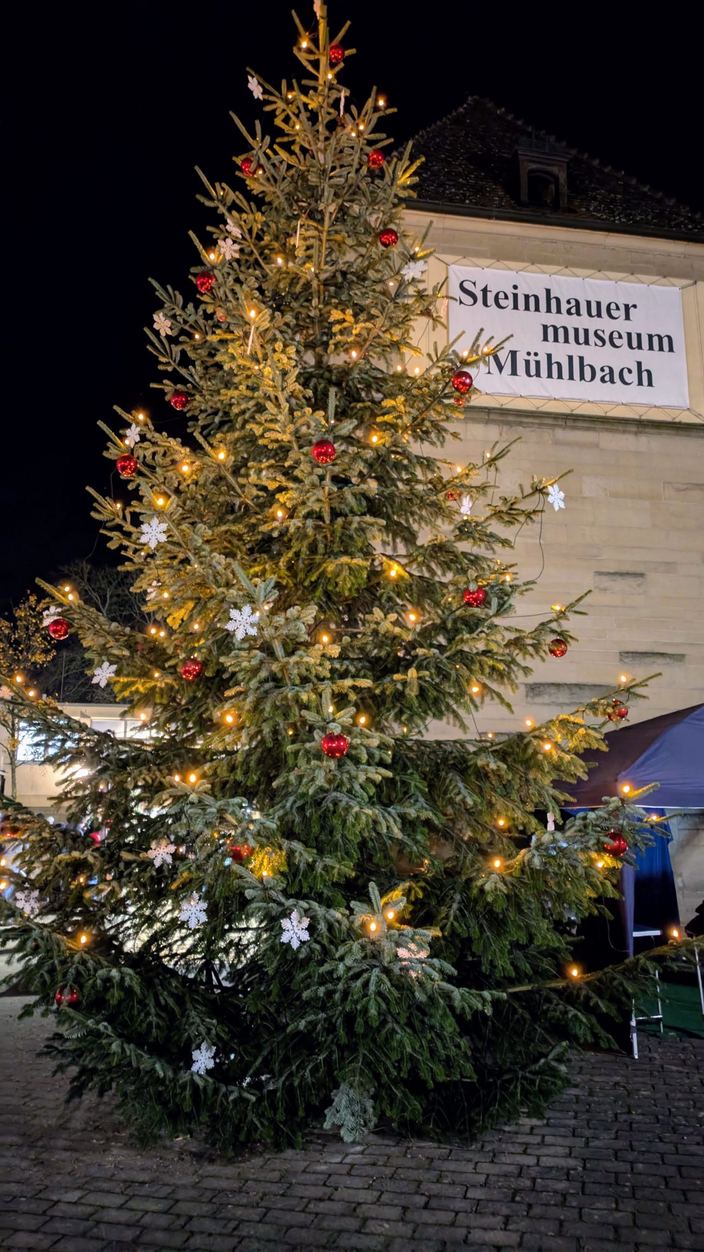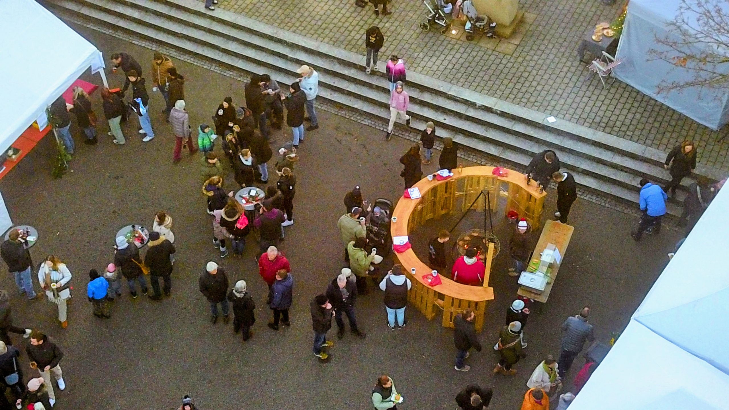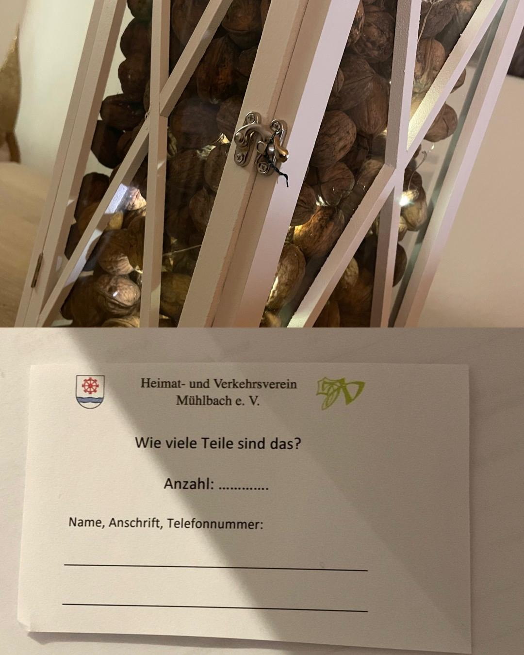 Traditionell wurde am vergangenen Samstag vor dem ersten Advent mit dem Mühlbacher Weihnachtsmarkt im Steinhauerdorf die Adventszeit eingeläutet. Schlag zwölf Uhr begann das Treiben auf dem Rathausplatz, an dem sich auch unser Verein wieder gerne beteiligte. Neben lokalem Winzerglühwein und Baguettes gab es eine Menge anderer Dinge an unserem Stand. Ortsliteratur und das Heft Mühlbach aktiv waren ebenso im Angebot, wie unsere beliebten Mühlbachjacken. Auch die von uns gestalteten Mühlbachtaschen und -tassen konnte man erwerben. Unser Christkind, Leonie Frank, verteilte wieder Süßigkeiten unter den kleinen Besuchern. Und dann gab es da ja noch das Schätzspiel: Wie viele Walnüsse befanden sich eigentlich im Behältnis? Na, haben Sie mitgetippt? Es waren genau 478 Stück und mit einer Schätzung von 477 lag Ingrid Krüger wirklich nur um eine hauchdünne Nuss ganz nahe. Glückwunsch und viel Spaß mit dem Gutschein über 30,- Euro für einen Christbaum, den Sie bei der Schnapsbrennerei Holtz einlösen darf.